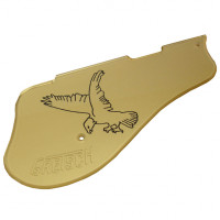 - Pickguard G6136 White Falcon pour micros Filter'Tron - Plastique acrylique doré avec logo Gretsch fond gravé - Couleur gold...