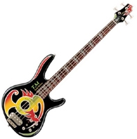 Corps tilleul, manche traversant érable argenté, incrustations nacrées sur le manche, 2 micros doubles actifs Bartolini, chevalet Fortress, accastillage alu brossé, noire avec graphiques en couleur....