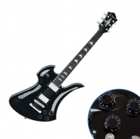 Corps en Basswood - Manche vissé en érable, 24 cases - Chevalet tune-O-Matic avec cordes traversant le corps. - Deux micros B.D.S.M BC Rich humbuckers - Mécaniques à bain d'huile. - Un contrôle de vol...