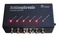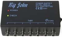 Alimentation 3 sorties en 9V et 3 autres sorties à haut voltage : 18V , 24V et 40V (pour alimenter les pédales Mxr Dunlop et Electro Harmonix).