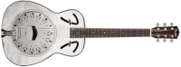 La table est en épicéa massif avec un barrage en X allégé, le dos et les éclisses sont en acajou laminé, pickguard trois plis, la rosette est un damier.