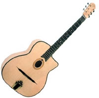 Table épicéa massif Dos et éclisses palissandre brésilien Manche acajou Touche ébène Chevalet ébène à moustaches Sillet en os Pan coupé horizontal Mécaniques dorées Cordier type Selmer doré av...