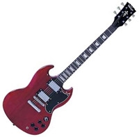 Guitare électrique au look vintage avec traces d'usure simulant une guitare jouées pendant des années...