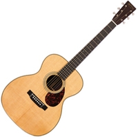 Table épicéa massif. Dos et éclisses palissandre indien massif. Rosace style 45. Incrustations nacre, table, dos et éclisses. Barrage "X" Scalloped. Manche acajou massif. Tête avec logo Martin en incr...