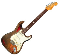 Manche en érable 22 frettes, de mécaniques chromées, de trois micros simple bobinage, d’un sélecteur 5 positions et d’un vibrato vintage