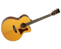 La TW145SC TANGLEWOOD, de la série PREMIER, séduit par son aspect folk blues très réussi : table massive en cèdre aux reflets miel et vernis satiné, mécaniques type Kluson, plaque 70's en écaille, bin...