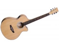 Guitare folk électro-acoustique TANGLEWOOD de la série EVOLUTION Modèle Dreadnought pan coupé Table en épicéa massif Dos et éclisses en érable flammé Touche en palissandre Mécaniques type G...