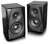 Moniteurs de studio bi-amplifiés Conception stylée 130 watts de puissance bi-amplifiée Woofers 8 pouces (20 cm) avec : cônes de kevlar incurvé bobines mobiles à haute température bor...