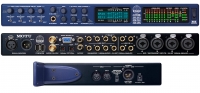 Interface audio équipée de 8 préamplis micros, le 192kHz en entrée et sortie, 8 canaux numériques ADAT en entrée et sortie et une entrée/sortie stéréo AES/EBU.