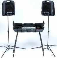 Comprend deux enceintes 2-voies à haut-parleur de 4" (102mm) et un mixeur amplifié.