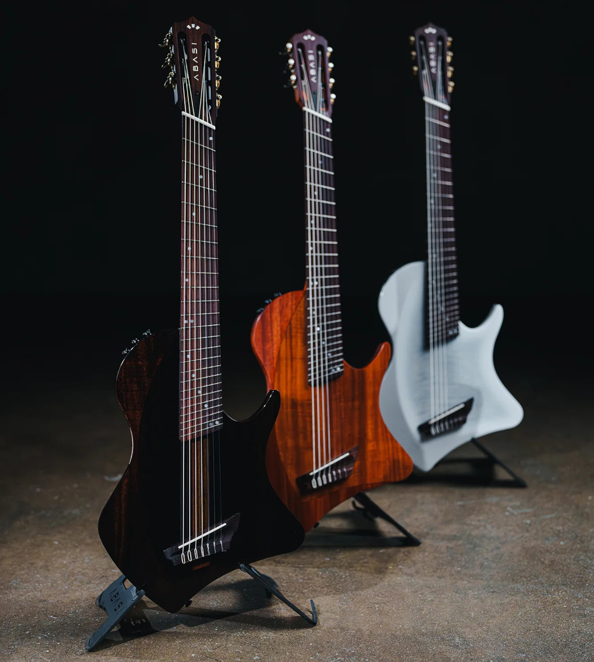 Ibanez a récemment défrayé la chronique en s'inspirant lourdement de Abasi pour leur modèle Alpha, mais les choses fonctionnent aussi dans l'autre sens puisque cette Cordoba Abasi Stage 7 n'aurait sans doute pas existé si Ibanez n'avait pas cartonné avec la signature à cordes nylon de Tim Henson (Polyphia). Mais ce modèle amène les choses beaucoup plus loin, avec sept cordes (du Si grave au Mi aigu), 24 cases accessibles et un frettage en éventail pour un diapason plus long dans les graves.
