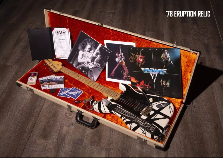 Non seulement le jeune Eddie Van Halen allait révolutionner l'histoire du rock et de la guitare en utilisant le tapping sur le morceau Eruption en 1978 mais il allait faire tout ça sur une guitare qu'il avait bricolé lui-même dans un but bien précis ! Pour célébrer cet anniversaire comme il se doit EVH sort 3 éditions limitées 78' Eruption, 78' Eruption Relic et Super '78 toutes accompagnée d'un étui plus ou moins rempli de goodies, vinyles dédicacés et autres souvenirs d'époque.