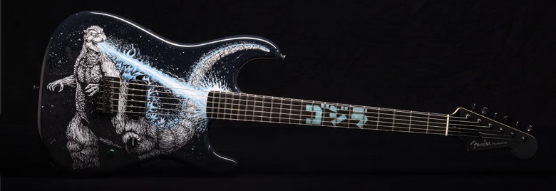 En 1954, le Japon se remettait encore du traumatisme général des attaques nucléaires américaines, et c'est pour conjurer le sort qu'ils ont inventé le kaiju, ce monstre géant qui a donné naissance à un style de films à part entière. Le kaiju originel est bien sûr Godzilla, ce dinosaure aux proportions dantesques capable de détruire une ville entière d'un coup de queue. 1954 était aussi l'année de naissance d'une autre icône pop qui a connu de nombreux remakes, la Stratocaster. Il était donc logique que les deux finissent par se rencontrer, ce qui est désormais le cas avec la gamme Fender Godzilla 70th Anniversary.