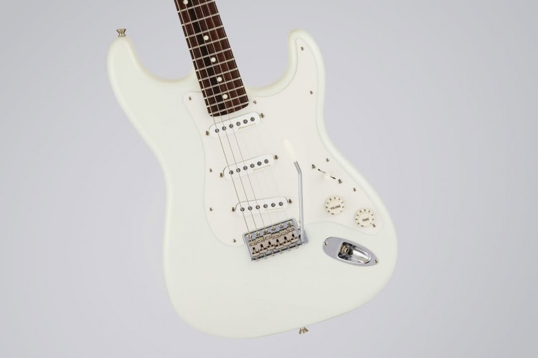 Juk Jae est un musicien multi-talentueux qui s'est à la fois illustré en tant que producteur, compositeur, arrangeur, chanteur et guitariste, dans le cadre de sa carrière solo ou aux côtés de stars internationales de la K-Pop comme IU et Taeyeon. On reconnaît bien là la stratégie de Fender qui a fait un modèle Gretsch avec le producteur Jack Antonoff et une Stratocaster avec le chanteur/producteur Steve Lacy. Juk Jae a aussi jeté son dévolu sur la solid body la plus célèbre de la marque, avec une version type sixties Olympic White à touche palissandre qui n'est pas sans évoquer Hendrix. Le vibrato à six vis aux pontets vintage nous conforte dans l'impression que la JUKJAE penche du côté des grandes anciennes, et l'on retrouve d'autres éléments de la recette classique comme le corps en aulne et le manche vissé en érable.