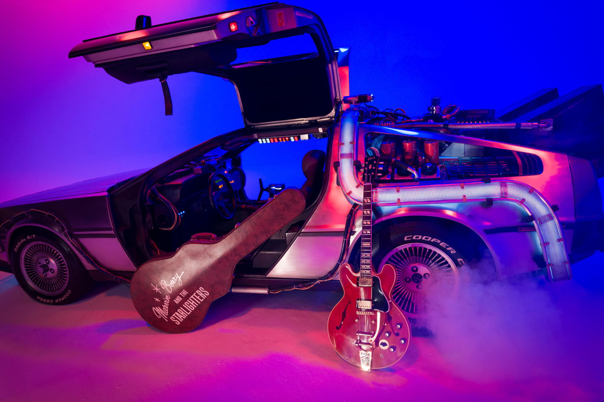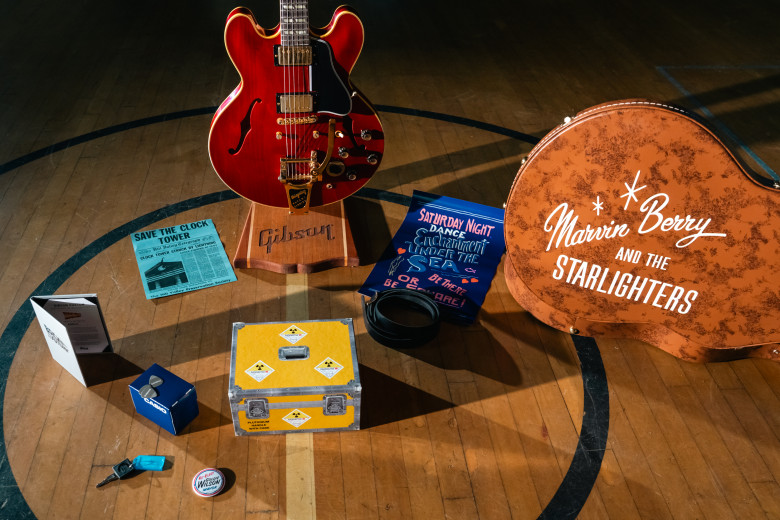 Deux modèles sont disponibles, dans les deux cas avec l'accastillage doré : la Gibson Custom Back to the Future "1955" ES-345 Collector's Edition Light Aged, une réplique ultra minutieuse légèrement vieillie à un prix qui a de quoi faire pâlir, et la Epiphone Back to the Future ES-345, nettement plus accessible. La première est une ES-345 style 1961 qui aurait de quoi tromper un connaisseur, du vrai travail de faussaire avec une table en trois plis érable ondé / peuplier / érable, le vibrato Bigsby B7 et des micros Custombucker Alnico 3. L'Epiphone est évidemment moins fidèle avec cinq plis d'érable, le Bigsby B70 et des Alnico Classic Pro. Dans les deux cas, on a un étui orné du logo du groupe du film, Marvin Berry and the Starlighters, et la version Gibson Custom Shop est accompagnée de son lot de goodies et memorabilia qui raviront les fans. Cette dernière est une édition limitée à 88 exemplaires, la vitesse en miles par heure à laquelle la DeLorean devient une machine à remonter le temps.
