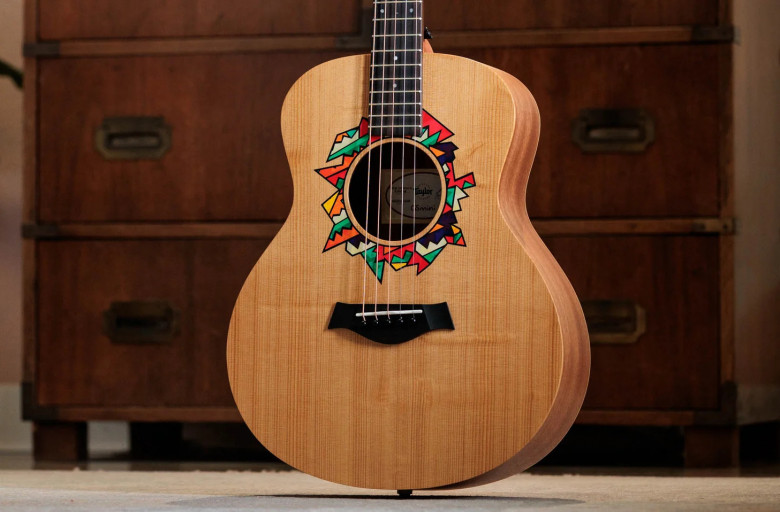 Mais le coup de grâce vient de la Jacob Collier GS Mini 5-String. Taylor propose ainsi la première version signature de son excellent format GS Mini, à l'origine une guitare de voyage qui a fini par s'imposer comme un standard moderne. On retrouve son format arrondi et accueillant typique, son diapason réduit de 23,5 pouces et surtout son prix bien tenu. La table est en épicéa Sitka, le corps en sapele laminé, le manche en acajou et la touche en ébène. Enfin, la rosace est décorée de belles couleurs vives assorties aux pantalons improbables de notre ami Jacob.