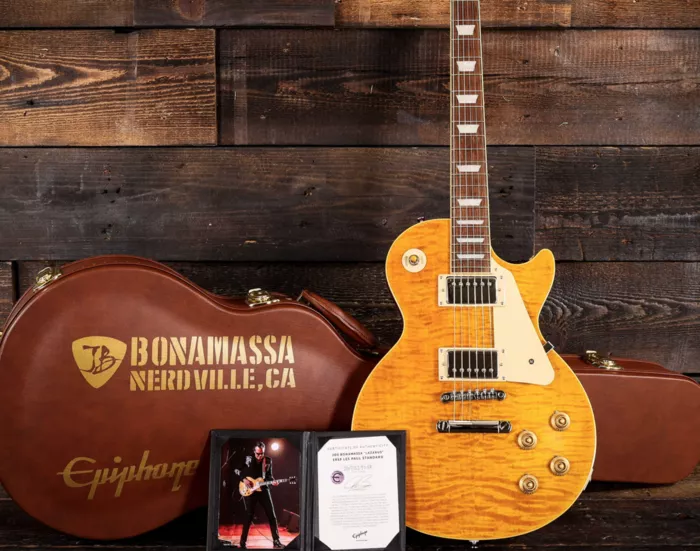 Quoi, Joe Bonamassa et Gibson-Epiphone sortent encore une nouvelle Les Paul ? Et oui, et pas n'importe laquelle puisqu'il s'agit de Lazarus, une authentique Les Paul de 1959 que Bonamassa et ses amis luthiers ont restauré pour en dévoiler la personnalité qui était bien cachée sous une finition rouge Cherry. C'est au catalogue Epiphone qu'elle débarque…