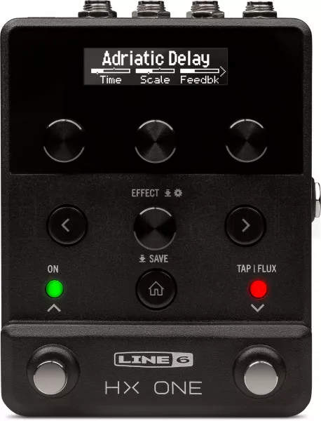 Malgré plus de 250 effets au choix (on a donc accès à tout le catalogue de la HX Effects mais pas aux émulations d'amplis de la HX Stomp), l'interface est d'une simplicité absolue : le petit écran noir et blanc indique l'effet de la position des réglages, trois boutons permettent d'ajuster ces réglages, un encodeur de changer l'effet, deux flèches de faire défiler les paramètres et un bouton de mémoriser le preset parmi 128 emplacements. Il y a ensuite deux footswitches, un on/off et l'autre pour le tap tempo ou la nouvelle fonction Flux selon les presets. La Flux permet en fait de passer progressivement d'un réglage de l'effet à un autre (avec plusieurs paramètres qui peuvent changer en même temps) à la manière d'une pédale d'expression, sans avoir à trouver de la place sur votre pedalboard pour une pédale en plus !