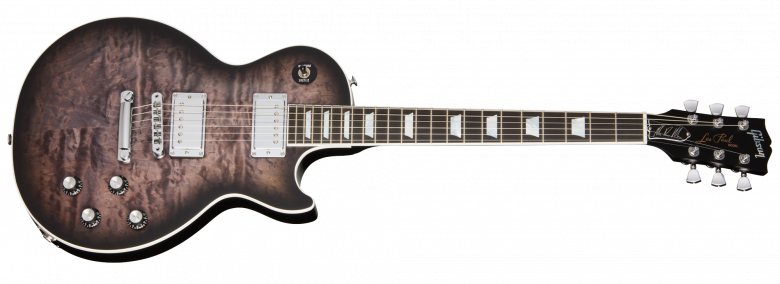 L'apport de Mark Morton est d'abord visuel, avec une spectaculaire table en érable pommelé AAA magnifiquement mise en valeur par la finition Translucent Ebony Burst Satin. Mais il y a aussi le son, et en particulier les deux micros signature propres à ce modèle. Exit les DiMarzio Dominion, Morton a travaillé avec le Custom Shop de Gibson pour mettre au point deux humbuckers céramique qui lui correspondent parfaitement, après des mois de tests de prototypes pendant les tournées de Lamb Of God. L'idée était d'avoir un micro manche relativement doux et plus typé vintage, pour contrebalancer un micro chevalet qui crache le feu.
