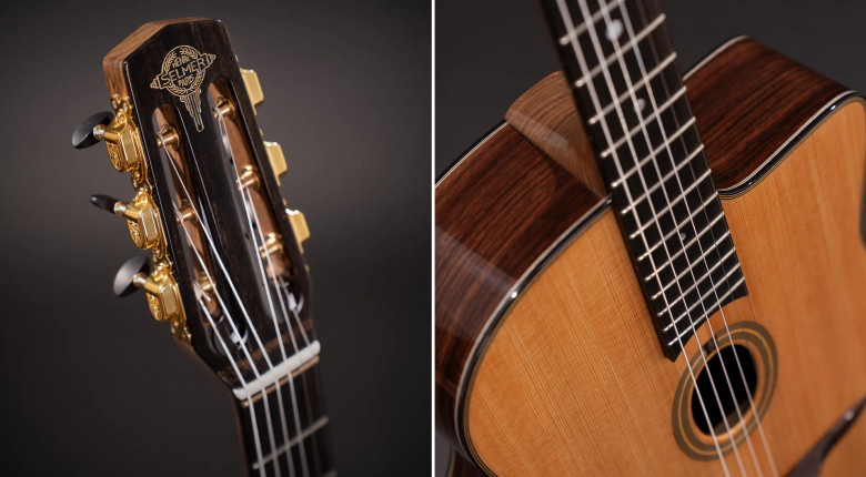 La mission a été confiée à l'atelier ALD, Gérald Alonso et Fabian Le Dosseur, qui se spécialisent dans la guitare manouche depuis 2004. Ils ont observé des Selmer originales en profondeur pour s'approcher au plus près de la vérité, tout en restant libres d'améliorer le confort de jeu. Les mécaniques (Selmer plutôt que les SB d'époque) et le cordier ont bénéficié du savoir-faire de la marque en matière de laiton. Côté bois, on a de l'épicéa des Carpathes pour la table, du noyer pour le manche, de l'ébène pour la touche et du palissandre pour le corps et le chevalet.