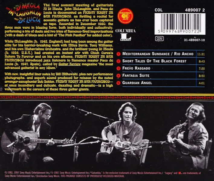 Initialement, il y eut le rêve d'un trio de guitares. L'idée, simple et insensée : John McLaughlin et Larry Coryell, deux phares du jazz-fusion, invitant l'impensable : Paco de Lucía. Le Maître absolu du flamenco, le Duende incarné, qui n'avait jamais vraiment cédé à la promiscuité du jazz. Une rencontre où le compás (la pulsation flamenco) venait toiser le swing.
