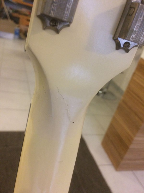 Il n'y a pas de problème à l'achat d'une guitare à tête cassée si la réparation a été bien effectuée. Sur cette photo, c'est la finition qui semble avoir été bâclée... Fatalement, ça porte à se demander si le recollage est professionnel ou pas... donc doute, c'est sûr.