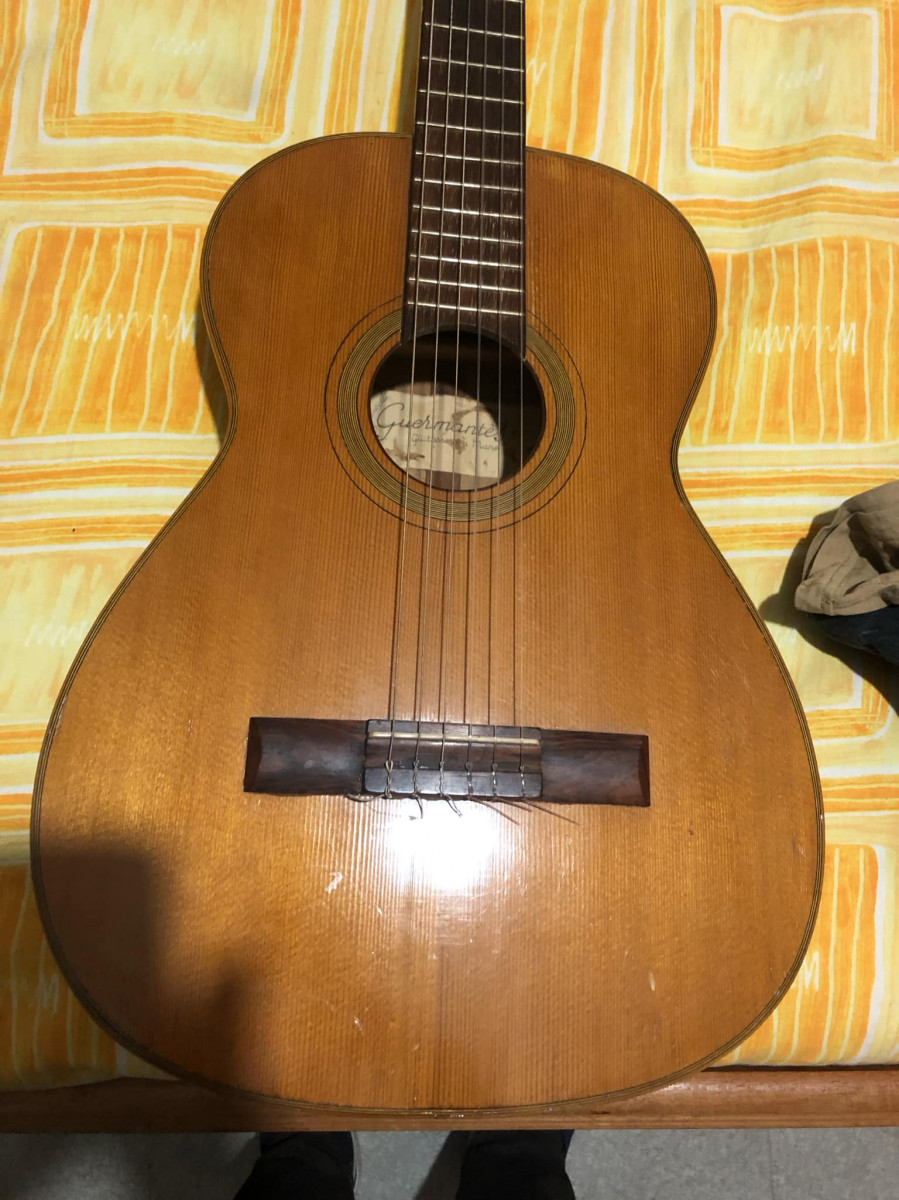 La guitare est une guermantes de 1955 apparement mais pas sur pour la date, en tout cas ça doit etre dans ces eaux la, en vous souhaitant une bonne soirée, merci pour les réponses qui seront donnés
