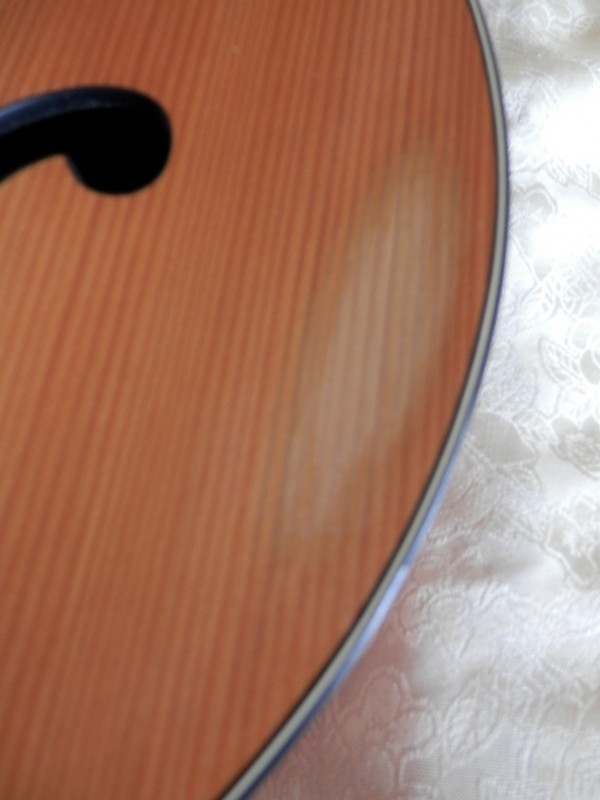 J'ai eu la mauvaise idée de vouloir enlever une petite rayure sur la table de cette guitare et