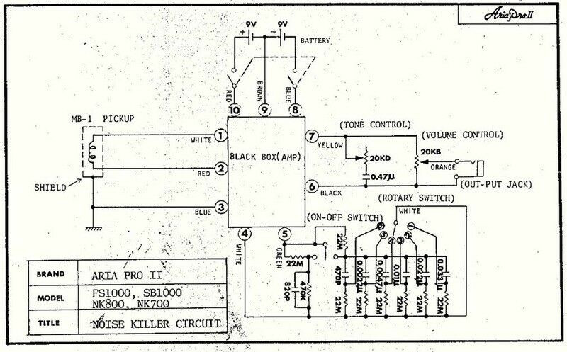 C'est un préamp commun avec d'autres modèles, notamment la basse SB-1000 pour laquelle on trouve un schéma (beaucoup plus complexe) mais je n'en vois pas pour la NK-700.