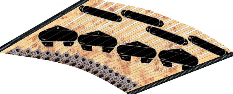 Volontairement l'espace entre chaque corde n'est pas identique à celui d'une guitare standard (mais plus espacé).