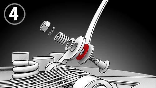 écrou/petite rondelle/mini ressort/2e rondelle? Plus juste une grosse rondelle sous le bras?