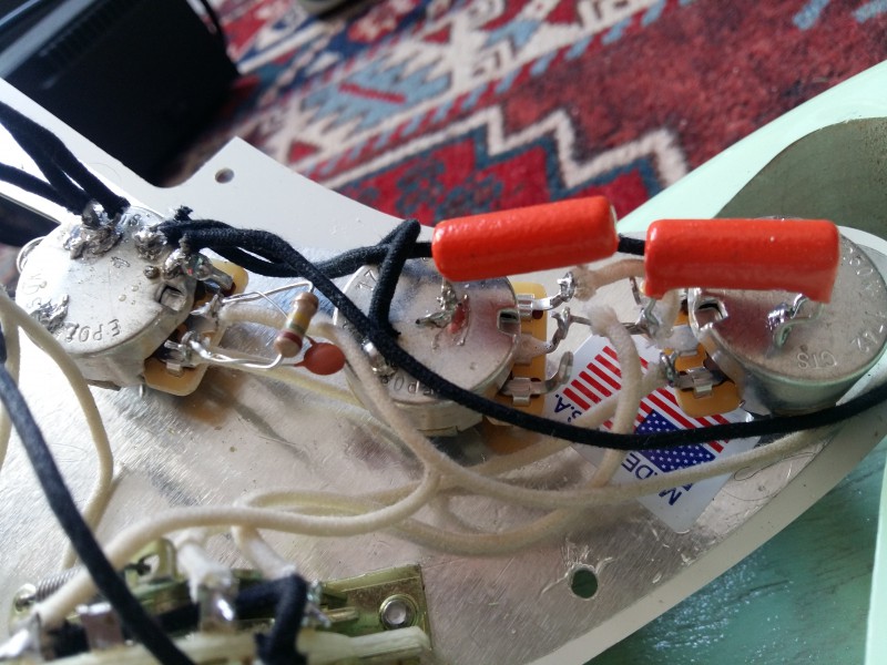 Ah mince, bon on va dire que c'est les erreurs du débutant ... Alors admettons que je refasse toutes mes soudures au propre. Si je veux que ma strat ne fasse plus de bruit (car c'est l'objectif au final) Qu'est ce que je devrais modifier ?