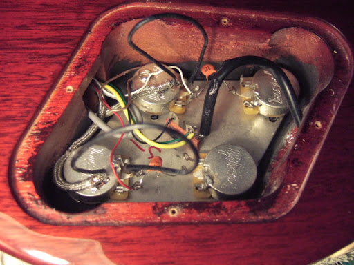 La différence avec le schéma de infra blues, est que le point chaud du micro arrive sur la borne centrale du potard "volume", d'ou part aussi le condo pour rejoindre la (aussi) borne centrale du potard "tone".