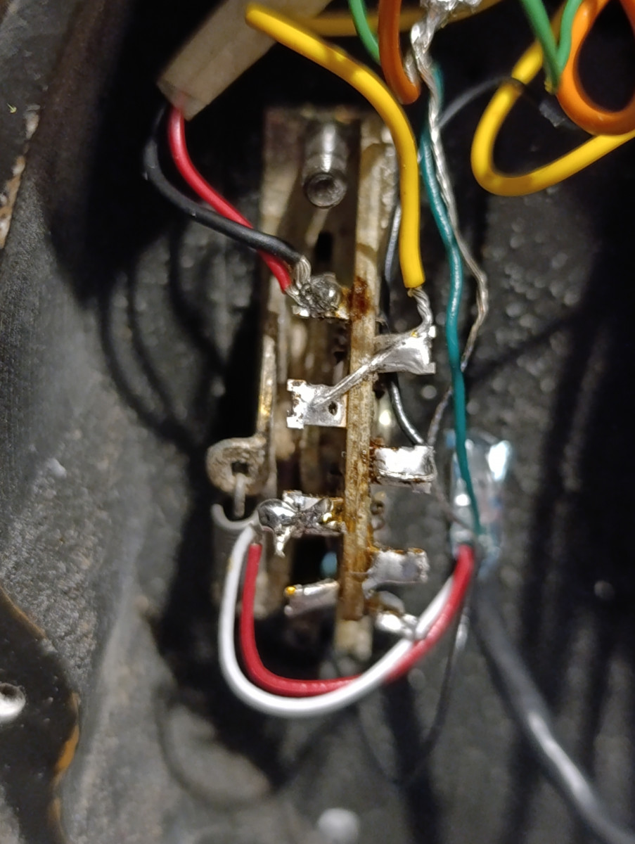 Le tomb raider lui possède un fil noir et un fil blanc donc le fil noir je pense doit être relié au potard de volume et le fil blanc en tant qupe point chaud au switch mais où ?en sachant que je veux qu'il soit en position middle