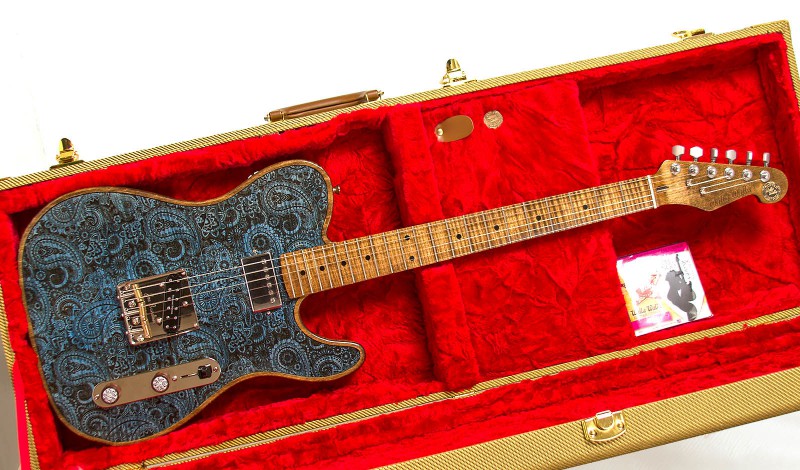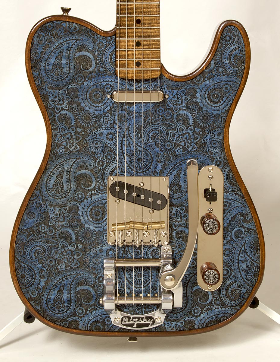 - Application de teinte bleue Stewmac au chiffon sur la table. Je vais mettre un scotch de masquage jusqu'au bord du motif pour garder le reste du corps en finition naturelle (j'ai un peu peur que la limite soit mal faite, mais je vais me lancer quand même)