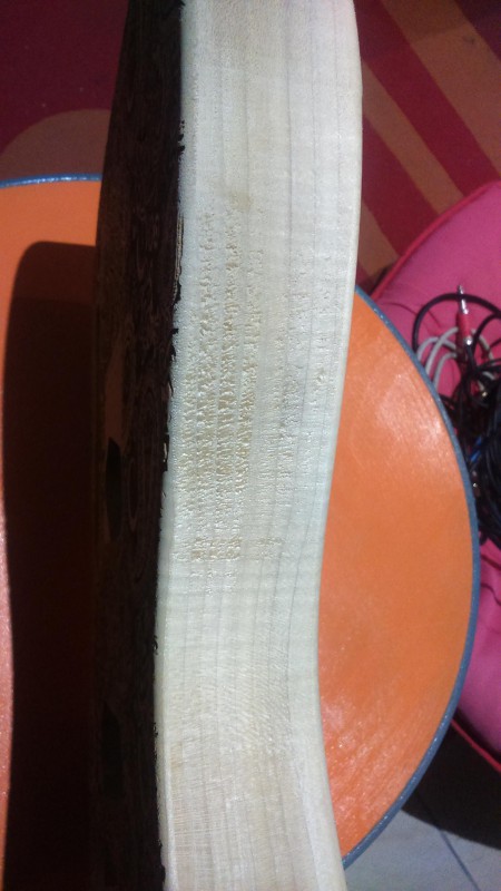 au papier de verre fin + laine d'acier 000. Je n'ai pas voulu y aller trop fort pour ne pas avoir à retoucher les courbes.