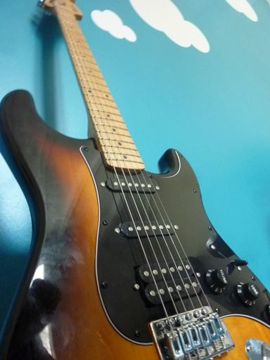 Histoire de changer un peu le style, j'ai installé il y a qq mois un pickguard noir que j'avais sous la main.