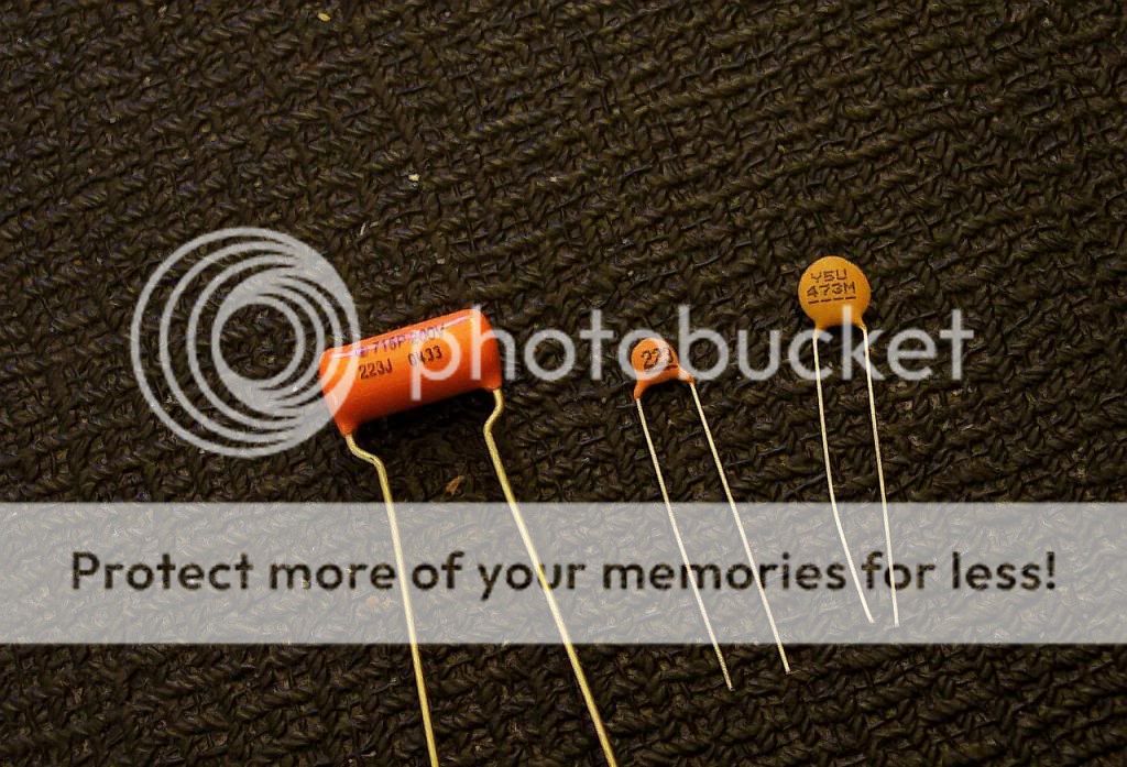 EDIT: après recherche, le gros condo semble être un Sprague Orange drop .022uf , celui du milieu un céramique .022uf et le dernier un céramique .047uf