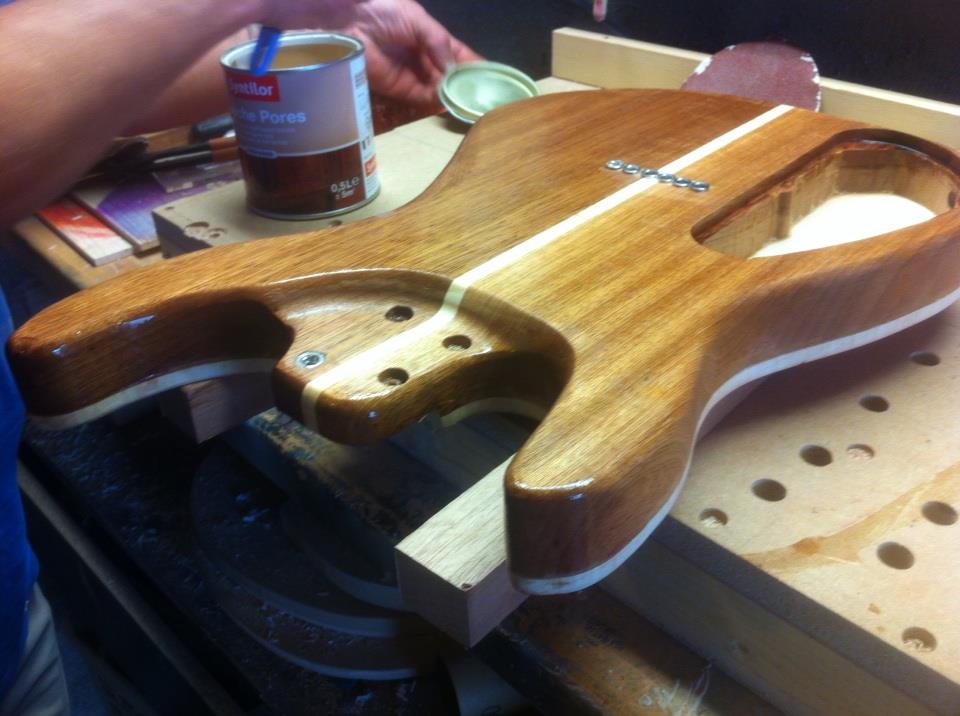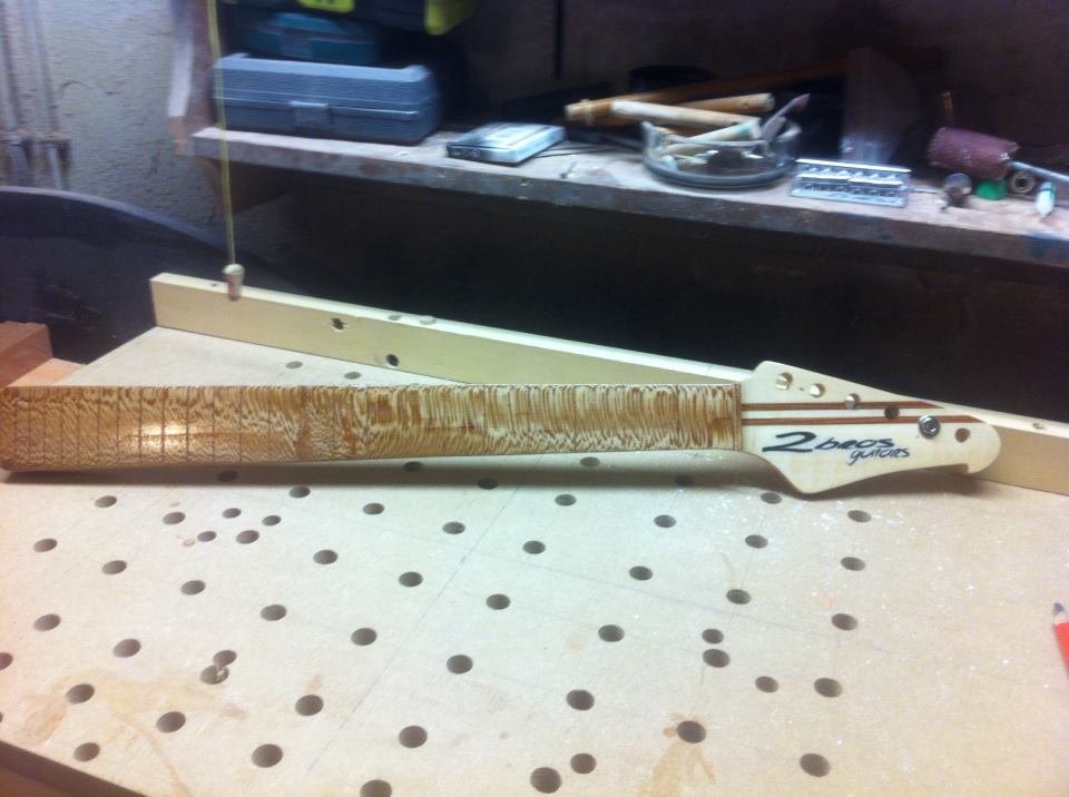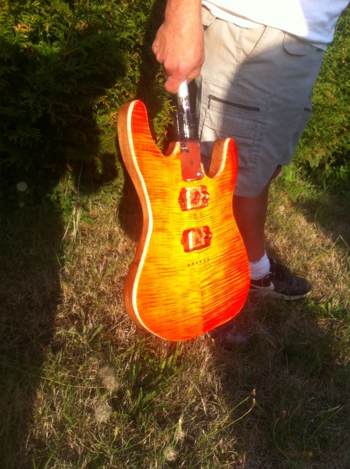 on a donc un corps acajou 2 parties en 35mm,entre lequel j'ai prit en sandwich une ame d erable ondéd'un cm.