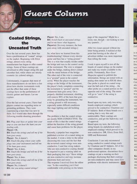 Salut, je suis retombé sur cet article et je me demandais si le constat de Roger Sadowsky était toujours d'actualité ou bien si les revêtements ont évolué depuis :