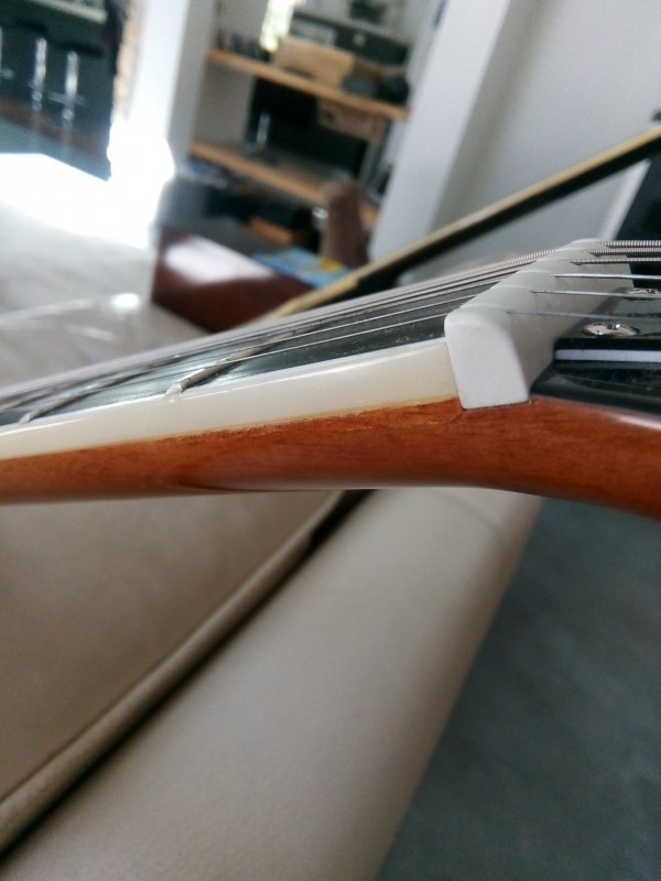 il y comme une craquelure à la jonction sillet-touche-manche qui m'effraie. La guitare est quasi neuve puisque la série date de 2020 mais j'ai vu sur la facture que la guitare a été reconditionnée sans en connaître la raison.