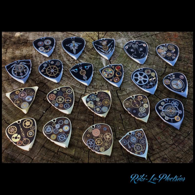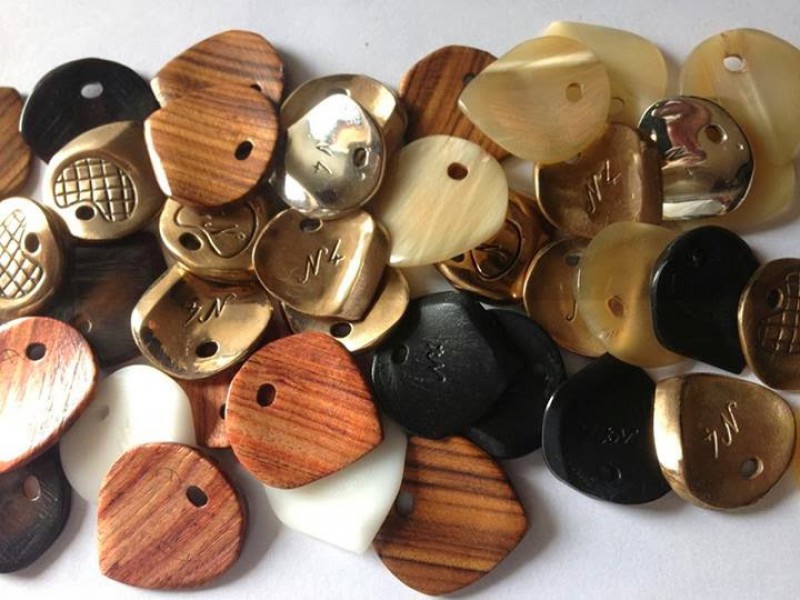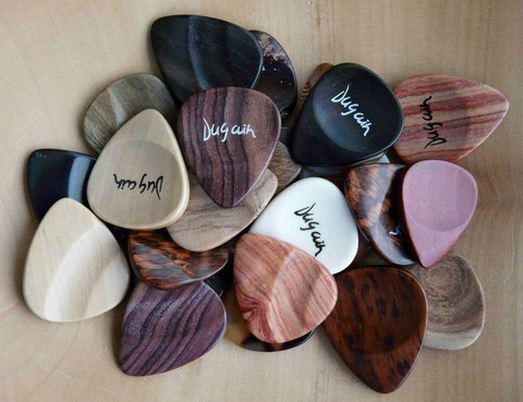 Dugain pour étudier avec eux la production de médiators personnalisés qui pourraient de plus être réalisés autrement qu'en plastic. L'utilisation de différents matériaux (bois, pierres, métaux, etc.) apporte de nouvelles sonorités et sensations de jeu qui méritent d'être explorées. On peut ainsi aller du simple médiator monochrome gravé jusqu'à obtenir de véritables bijoux.