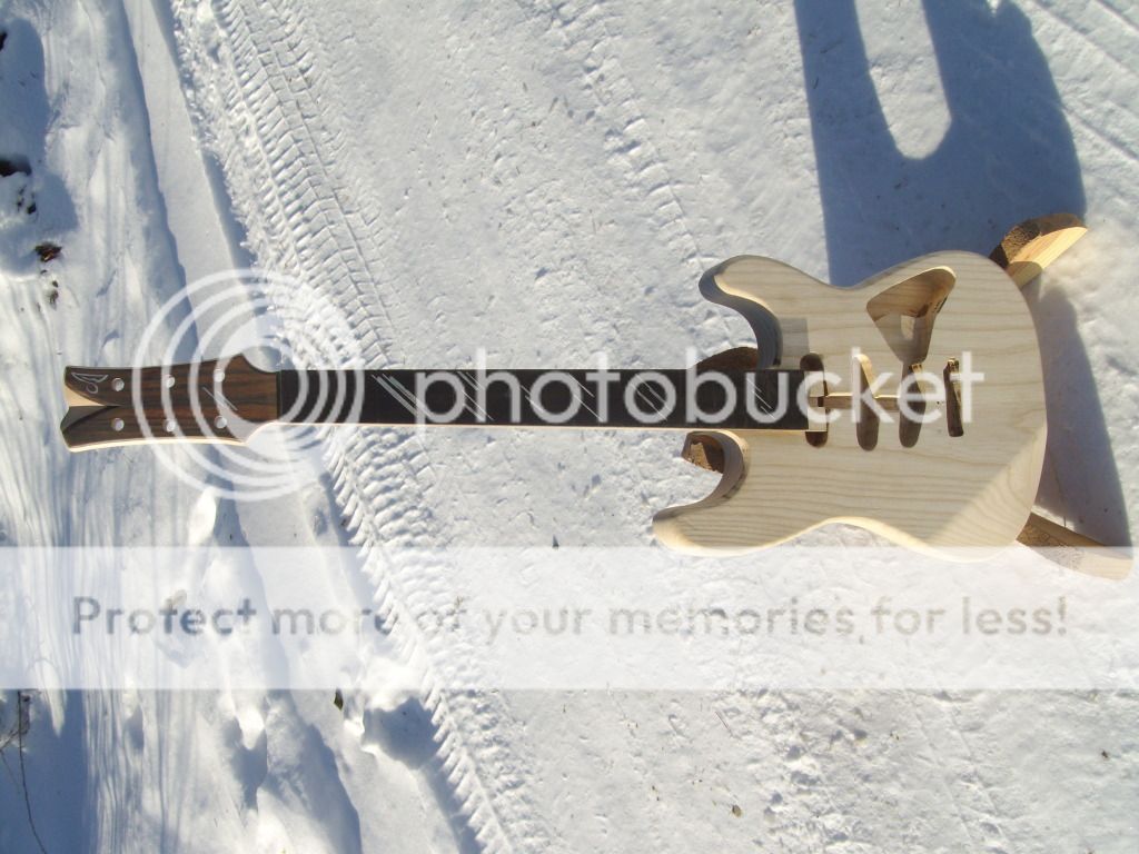 manche érable sur quartier (dimensions proches de Lâg), plaquage de tête cocobolo, touche ébène du Mozambique