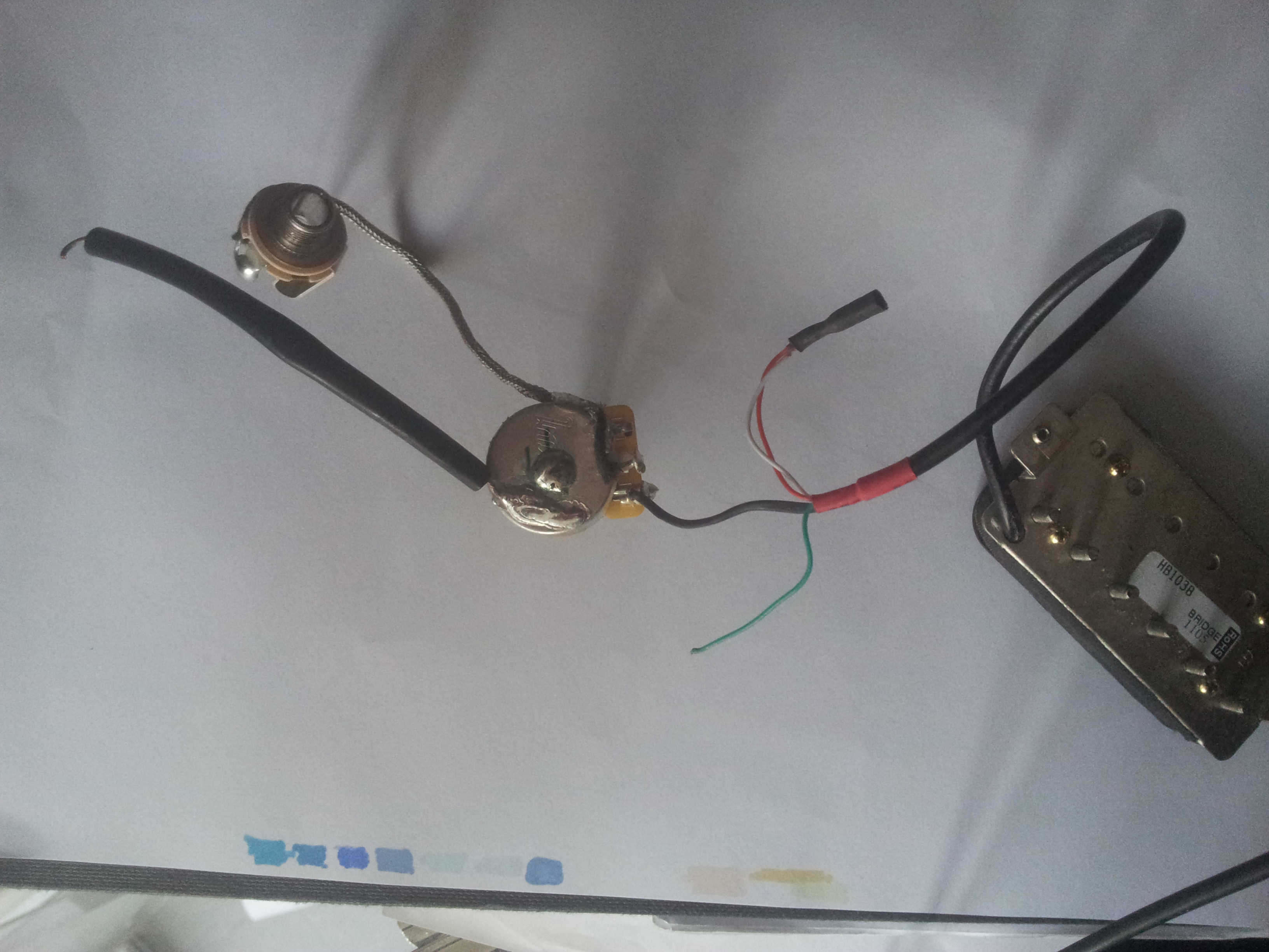 J'ai un petit souci de câblage assez débile... J'ai récemment démonté ma guitare pour lui refaire un lifting complet. Maintenant que je veux la remonter, je me rends compte que j'ai un petit doute ; au démontage, j'ai gardé le micro, le potard de volume et la prise jack d'un seul tenant. Je les ai pas mal manipulés par curiosité, voir comment c'est fait, etc...