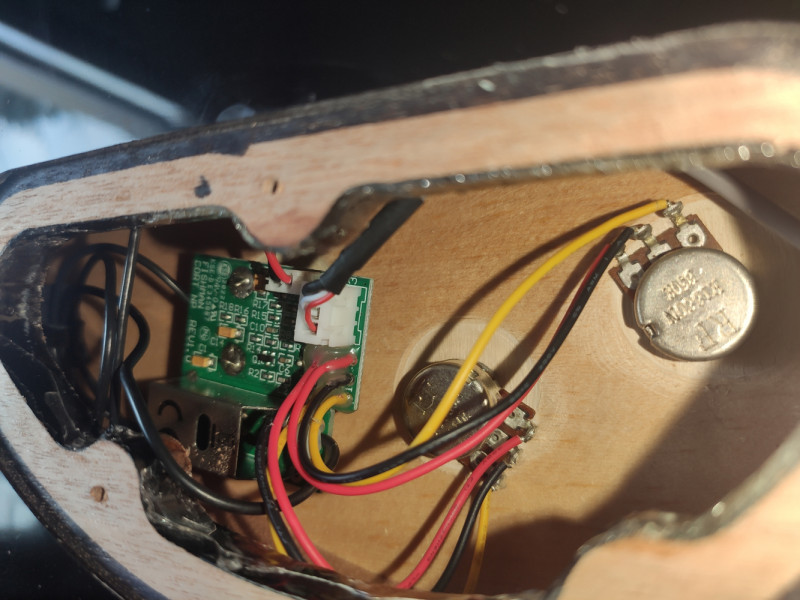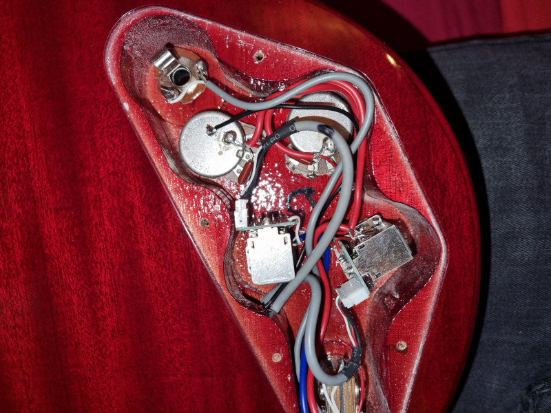 Pour mes guitares électriques, le buzz est présent mais vraiment en fond, ça s'entend à peine lorsque je ne touche pas les cordes. Quand je joue, vu que les cordes sont en métal, je n'ai pas le souci et l'électronique est tout refait par mes soins, je n'ai aucun souci pour l'enregistrement.