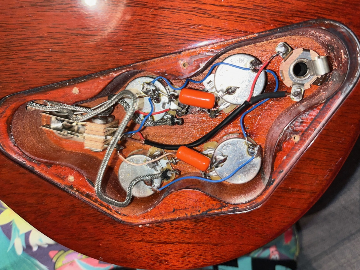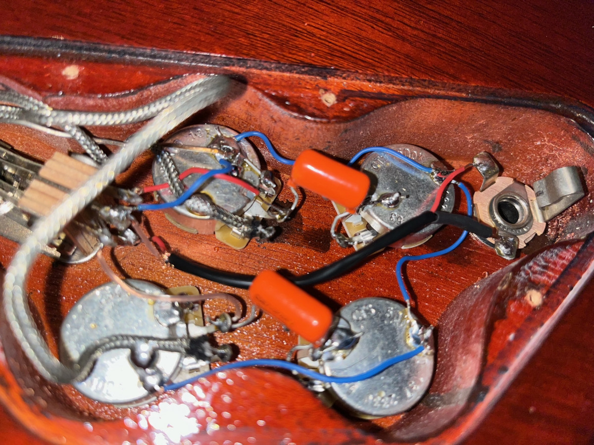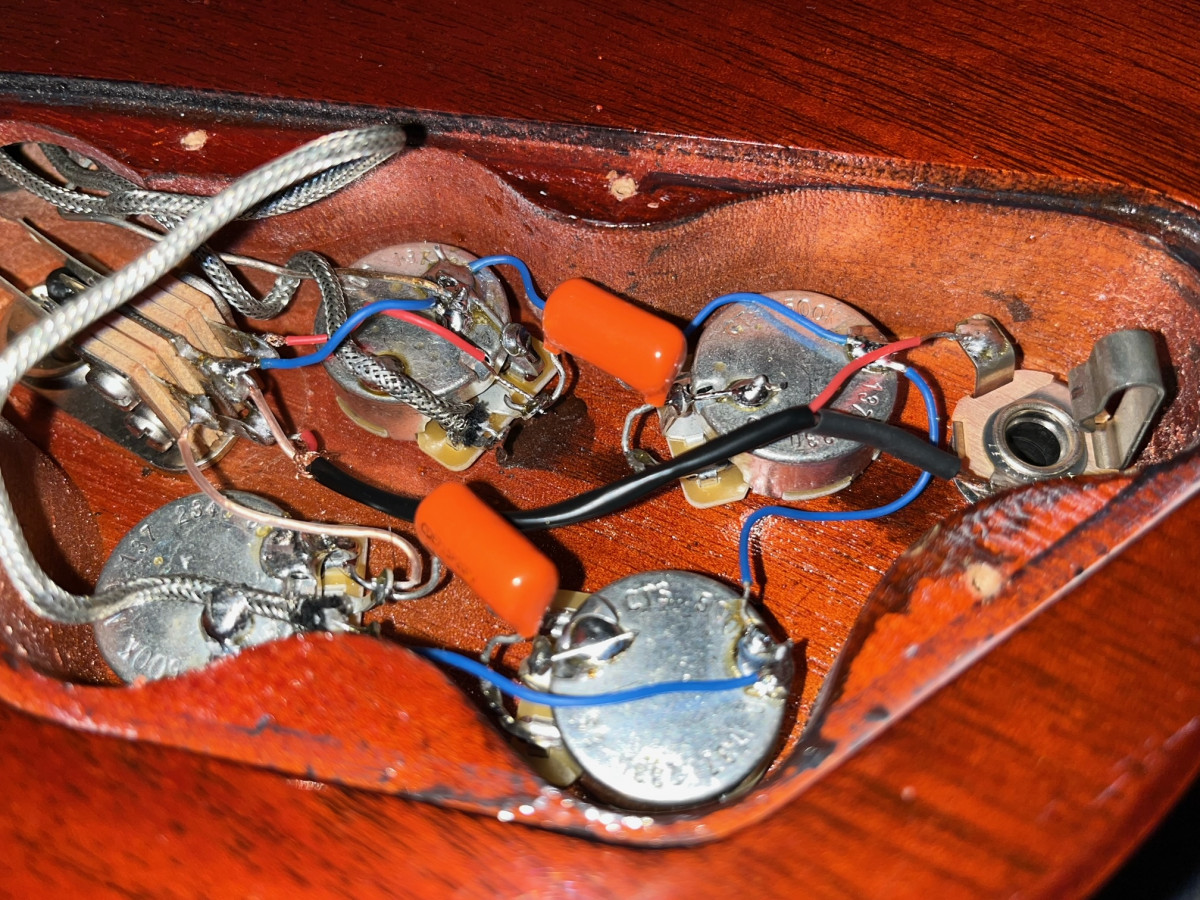 D'habitude chez Gibson, le jack est câblé avec un fil tressé comme les micros.