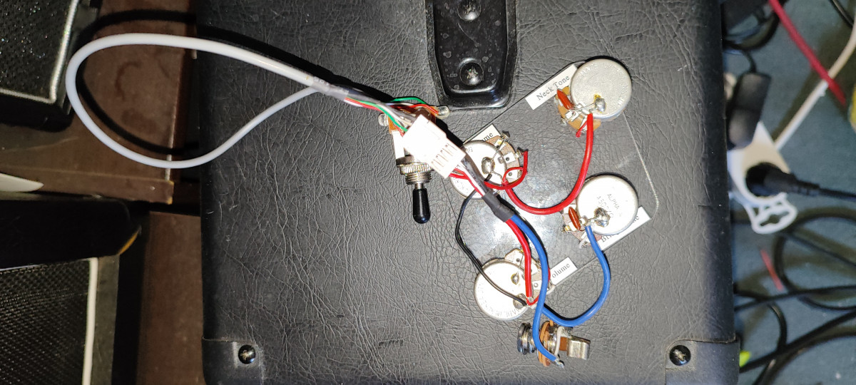 En fait j'ai effectivement dit une grosse connerie concernant le "branchement" au bois: c'était une soudure entre la masse du jack et le PCB lui-même! N'étant pas toujours chez moi en ce moment je n'ai pu vérifier qu'aujourd'hui, et je ne sais pas pourquoi je m'étais persuadé qu'une soudure pointait sur le bois, alors qu'il y avait évidemment le PCB au milieu...
