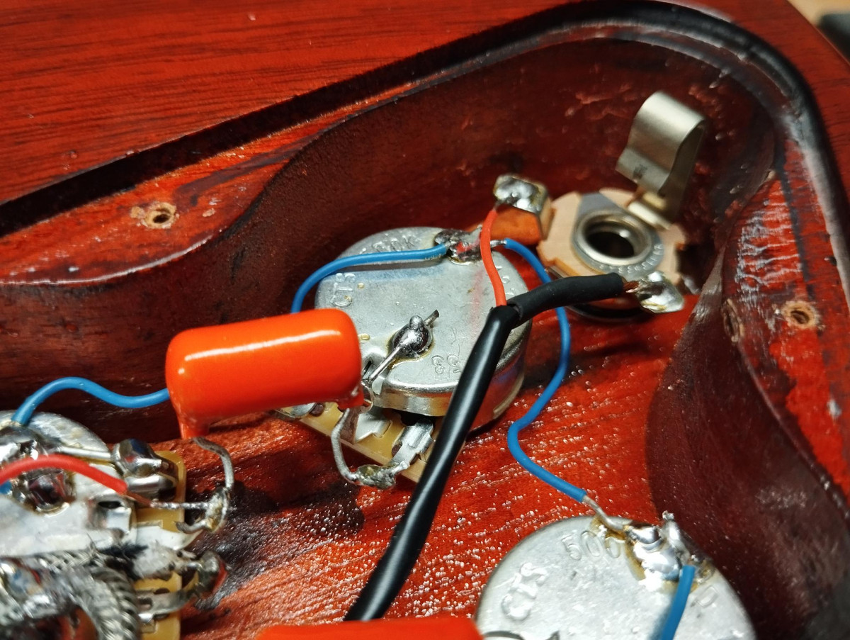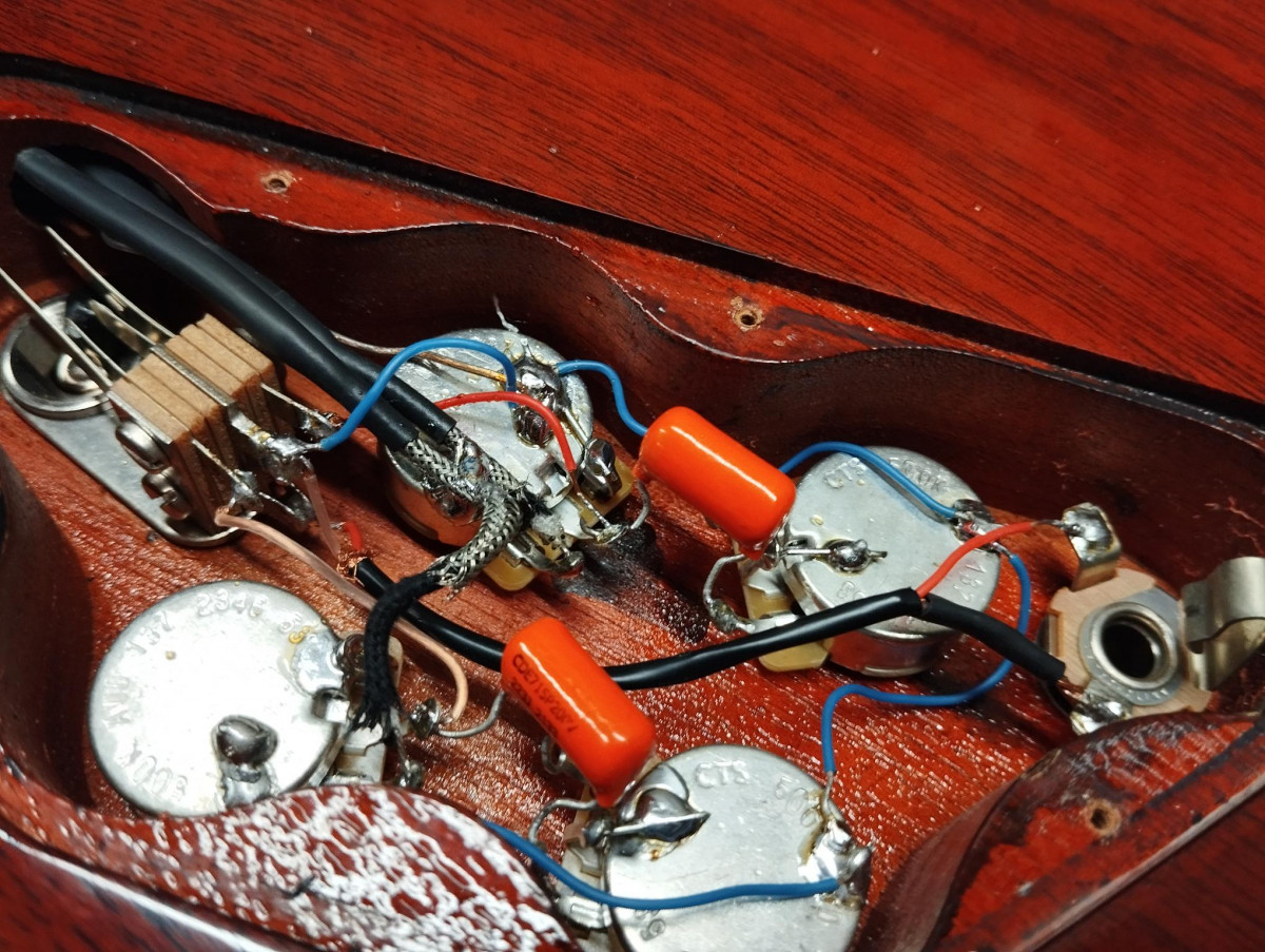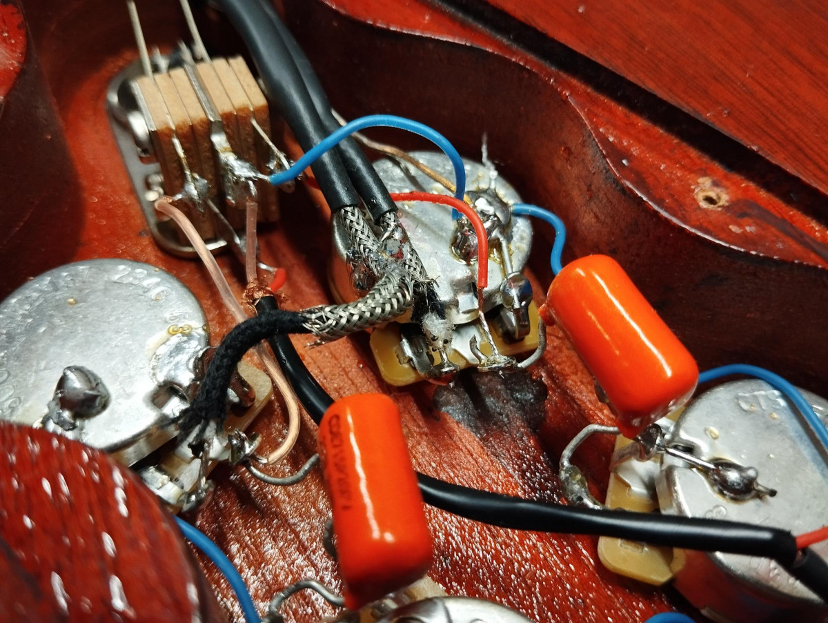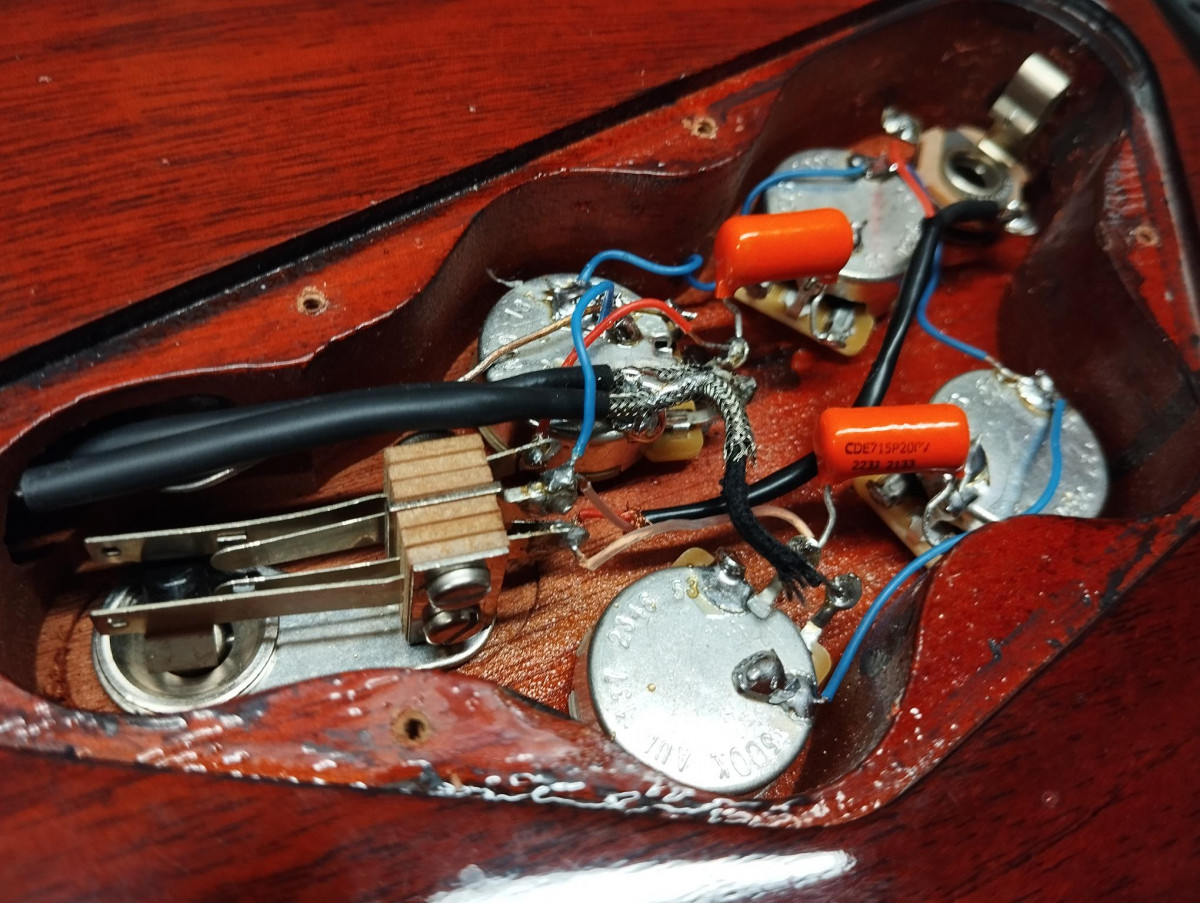 En principe je suis pas aussi têtu sur ces histoires, mais ce qui m'agace, c'est que j'ai une Tokai LP avec une électronique largement similaire, sans blindage particulier, et avec des micros aux caractéristiques très proches (et même en principe plus sensibles aux perturbations, car non paraffinés, alors que ceux de ma SG le sont), et qui n'a aucun son parasite. La seule vraie différence, c'est que ce n'est pas moi qui ai fait l'électronique de cette Tokai, à part un changement de micros...