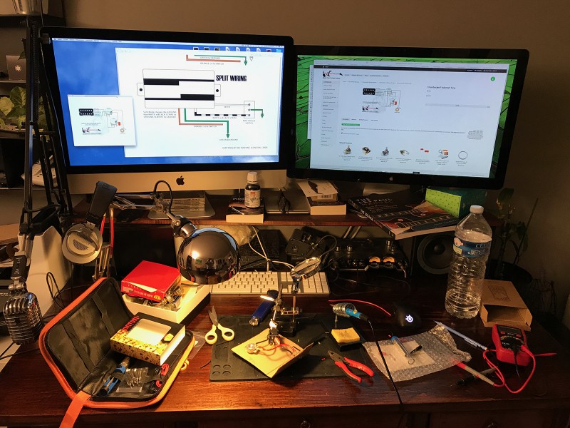 Le son est puissant et chaud : incroyable cet Alumitone Deathbucker ! Un peu moins en position single et pas si clair que ça, mais la guitare n'est pas réglée et il faut que le teste dans de meilleures conditions pour me faire un avis de toute façon.