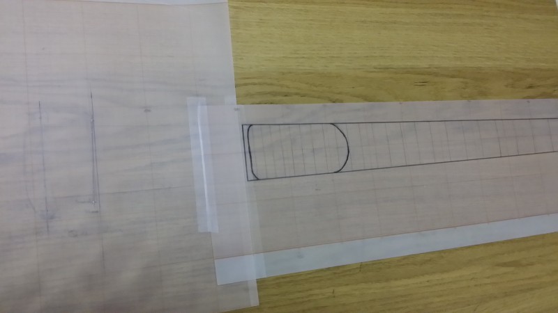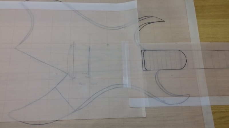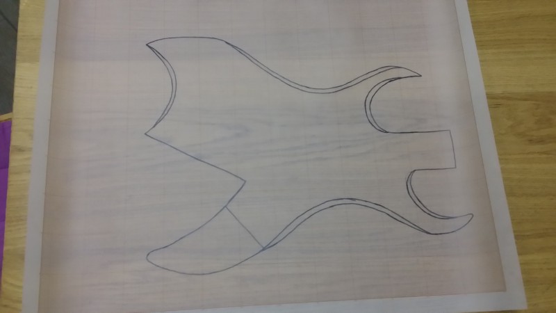 Après ses conseils j'ai fait des plans à l'échelle 1 du corps et du manche avec la ligne d'harmonique et la position du tunomatic et du tremolo.
